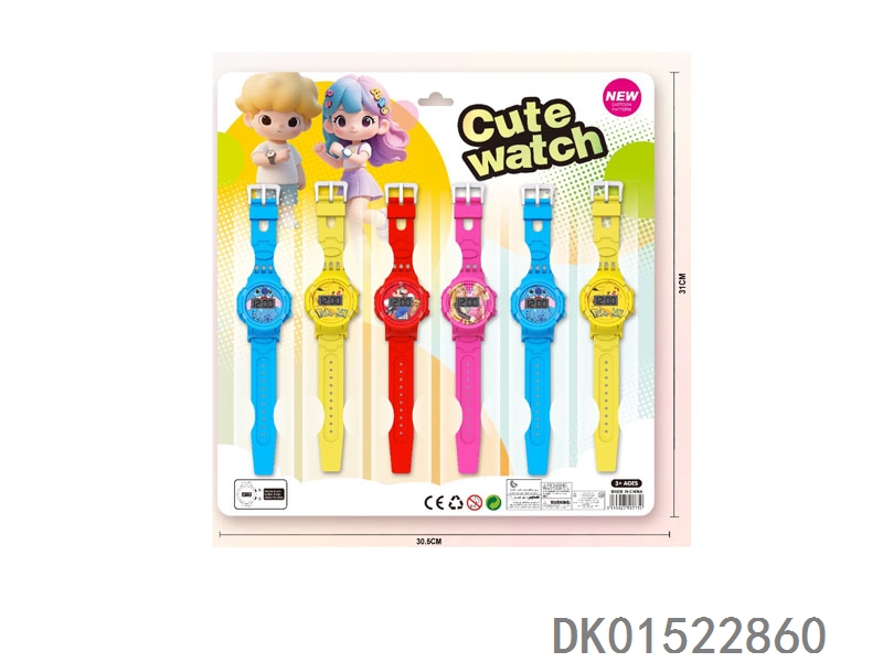 4 Electronic circular watches with no ribbon, 6 pieces per plate