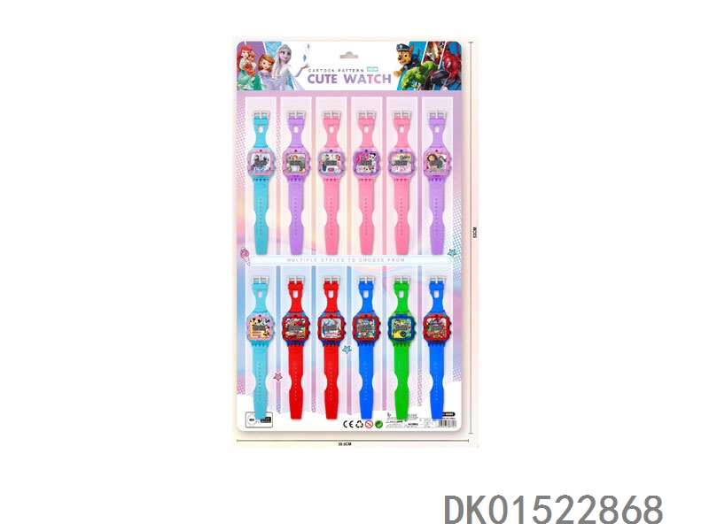 12 Electronic square watches with no printed bands, 12 pieces per board