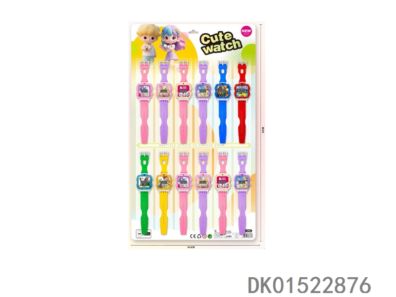 12 Electronic square watches with 6 unprinted straps per plate