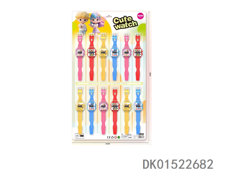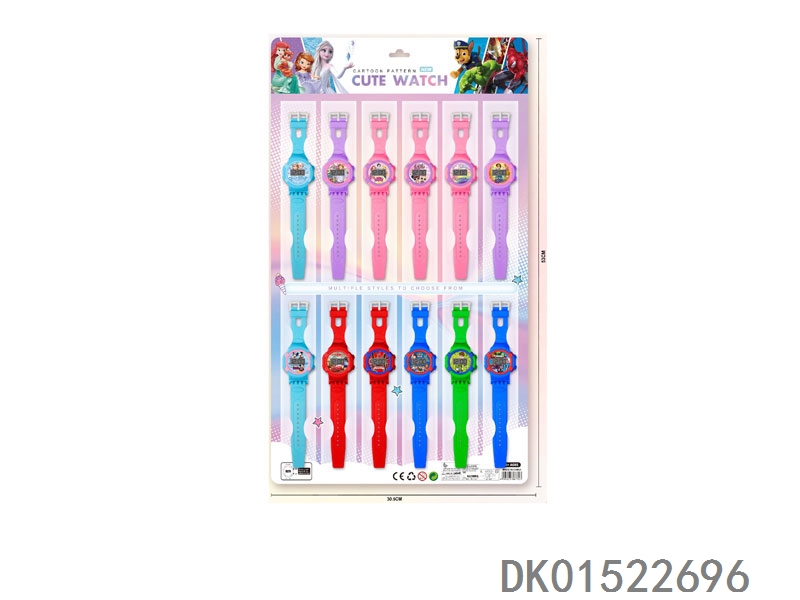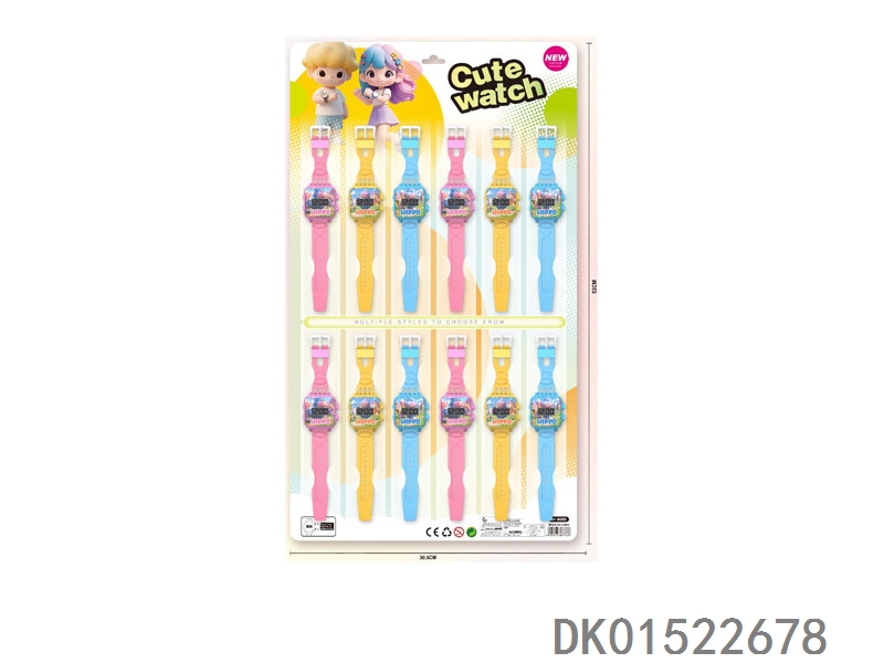 12 Electronic circular watches with no printed bands, 12 pieces per plate