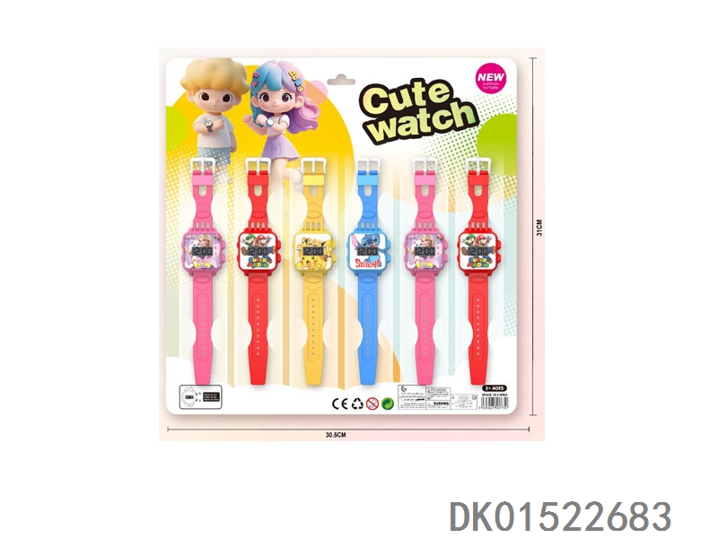 8 Factory version non infringing electronic circular watches with 6 unprinted straps per plate