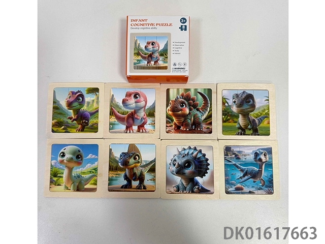 Dinosaur cognitive puzzle set (1 set of 8 pieces)