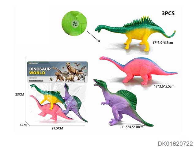 3 soft rubber dinosaurs with whistles