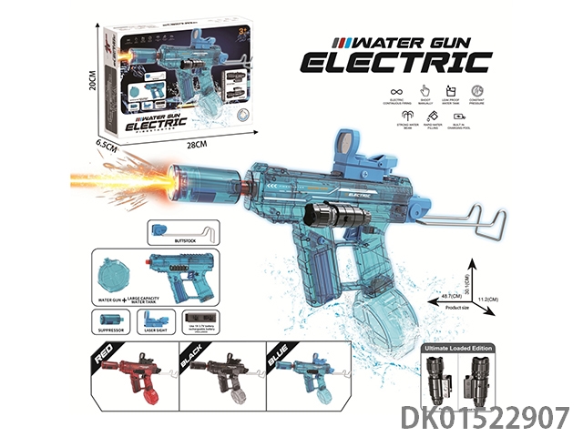 冰龙电动连发水枪(枪身带七彩跑马灯光和感应可调七彩喷火消音器)(两色混装包电)