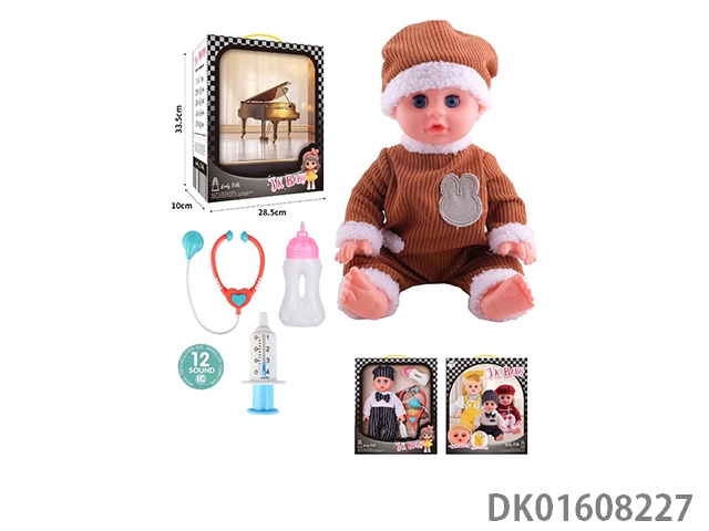 14寸搪胶12声娃娃护理套装(过家家公仔,包3粒AG13电池)