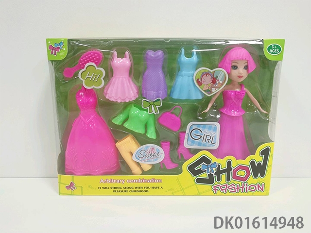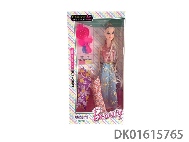 11.5寸实身长马尾晚装芭比娃娃女孩配服装+梳子(时尚芭比公主娃娃)