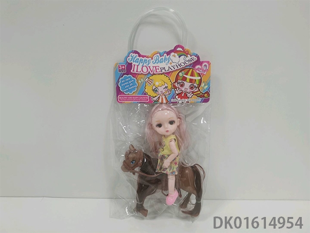 PVC卡头手提袋单只6寸娃娃(身体多关节)配小马,头盔