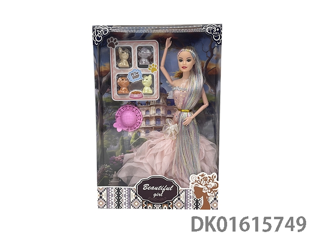 11.5寸9关节晚礼服长马尾时尚芭比娃娃配时尚帽子宠物狗