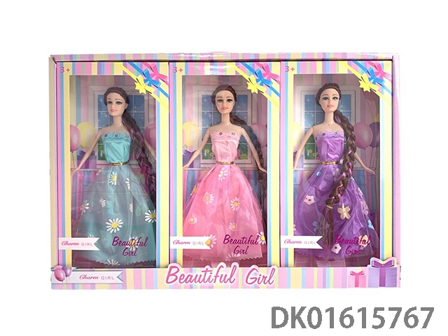 大腿11.5寸实身长辫子时尚晚装芭比女孩娃娃(时尚芭比公主娃娃)3只装