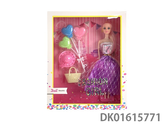 11.5寸实身长马尾晚装芭比娃娃女孩配气球+帽子+手提包(时尚芭比公主娃娃)