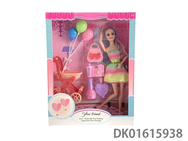 活动关节11.5寸实身长辫子时尚芭比娃娃女孩配购物车+气球+手提包+照相机+香水瓶(时尚芭比公主娃娃)