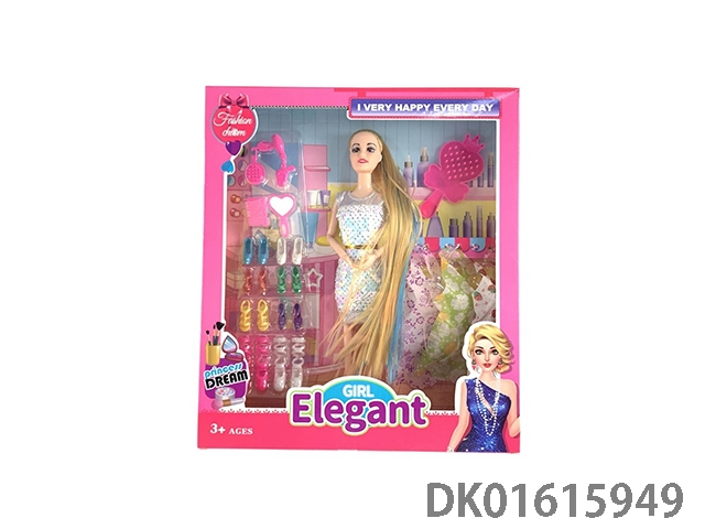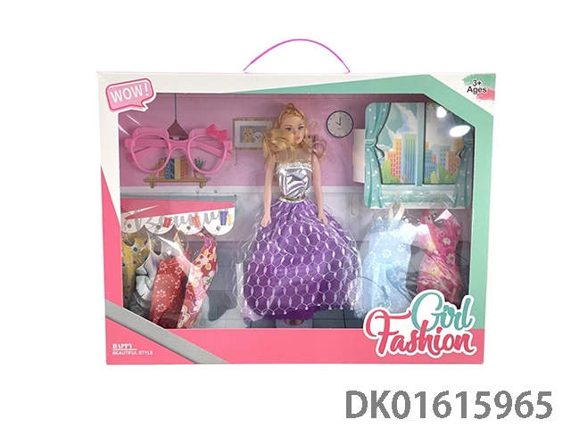 大腿11.5实身时尚芭比娃娃女孩配眼镜+帽子+发夹+香水瓶+手提包(时尚芭比公主娃娃)