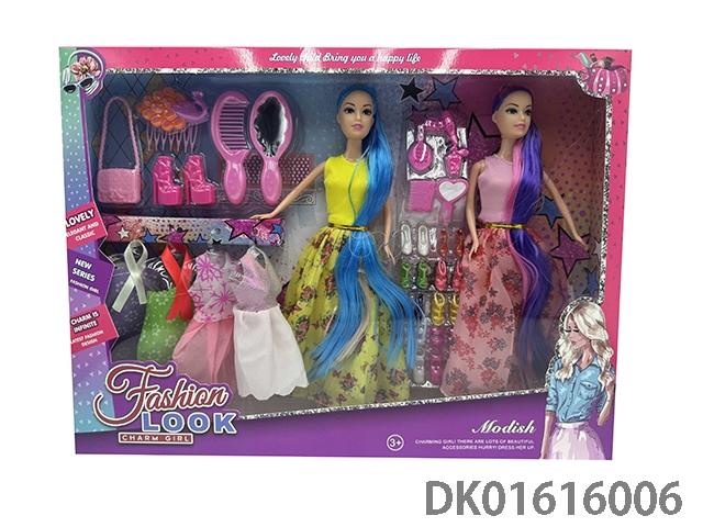 大腿11.5寸实身长马尾晚装芭比娃娃女孩姐妹配服装+鞋子系列+梳子+镜子+发夹+手提包+高跟鞋开 换装芭比公主娃娃