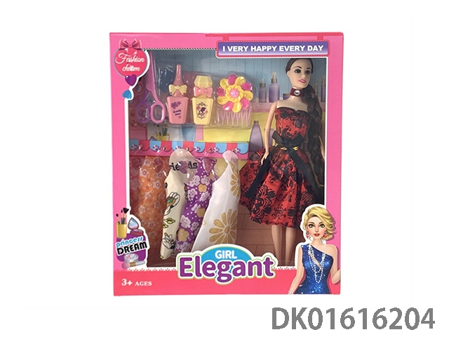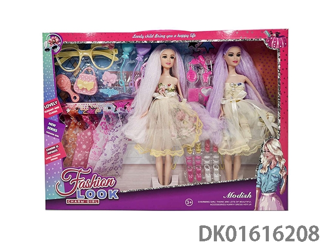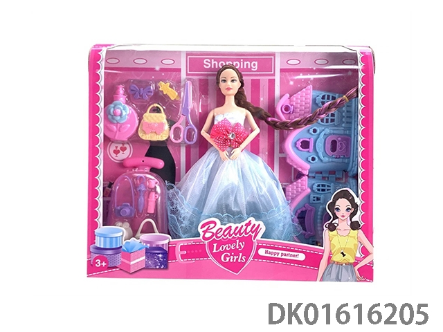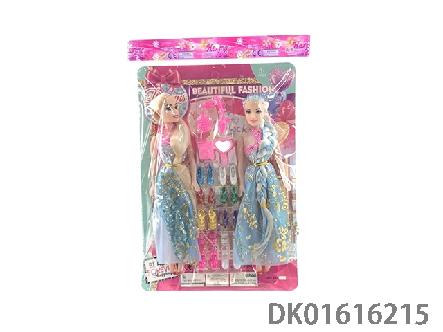 11寸空身双人长头发晚装芭比娃娃女孩配吹风筒+梳子+镜子+香水瓶+鞋子系列OPP纸板袋(时尚芭比公主娃娃)