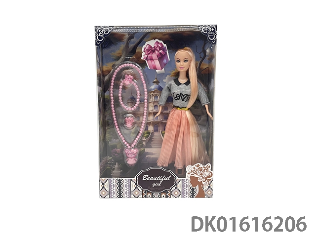 11.5寸实身长马尾时尚芭比娃娃配粉色小熊项链手链戒指系列 11.5寸芭比公主娃娃芭比套装长发公主芭比饰品