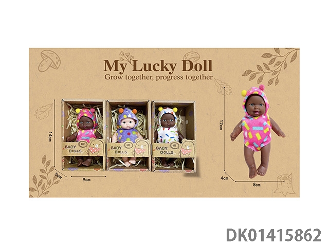 12cm全搪胶手掌娃娃彩色点点套装三款混装