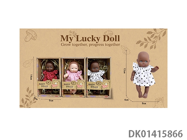 12cm全搪胶手掌娃娃波点裙三款混装