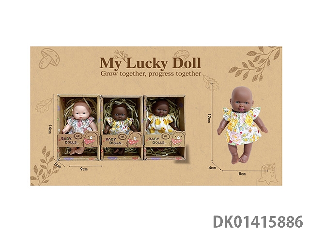 12cm全搪胶手掌娃娃碎花裙系列三款混装