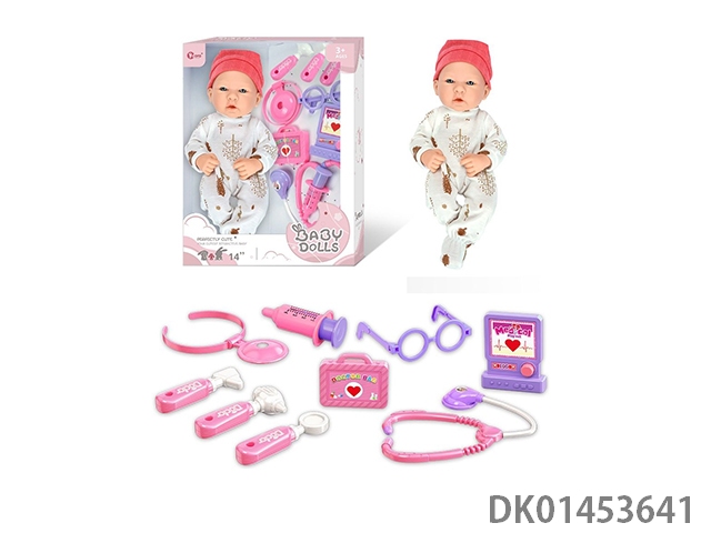 14寸全搪胶初生婴儿娃娃医具套装