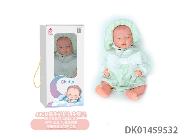 全身软胶主体,四肢软胶可转动43cm重生娃娃初生婴儿,高仿真妆容,血管血丝,尿布,出生卡,奶瓶,磁吸奶嘴
