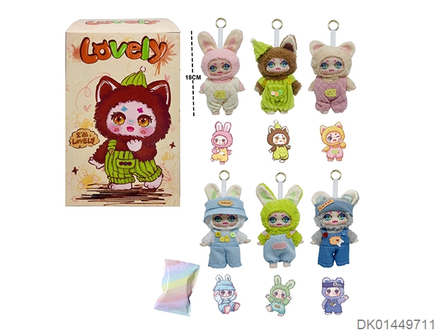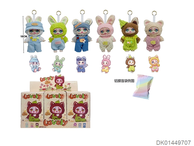 单头挂件 7.5寸高品质4D眼珠娃三岁莉莉兔小镇系列搪胶毛绒娃娃配钥匙扣加娃娃卡片(表情随机搭配 展示+盲盒+盲袋 6色混装 12PCS/BOX)