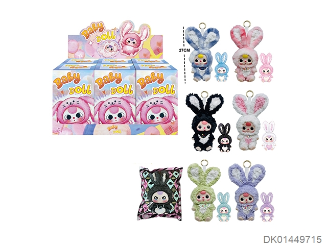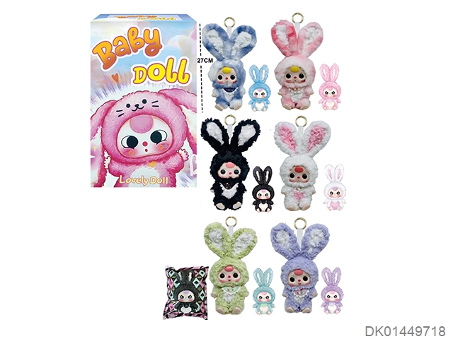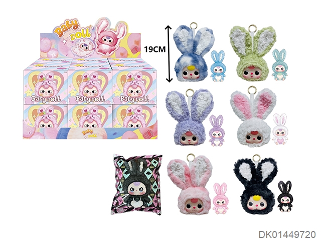 10寸高品质4D眼珠五关节可动娃三岁莉莉兔小镇系列搪胶毛绒娃娃配钥匙扣加娃娃卡片(表情随机搭配 展示+盲盒+盲袋 6色混装 6PCS/BOX)