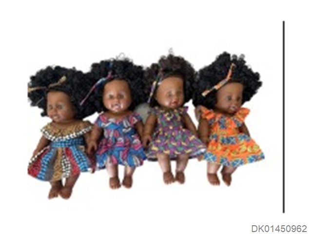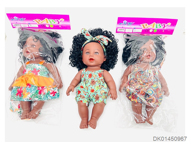 12寸重生黑娃娃 搪胶身体连衣裙 带头巾英文IC