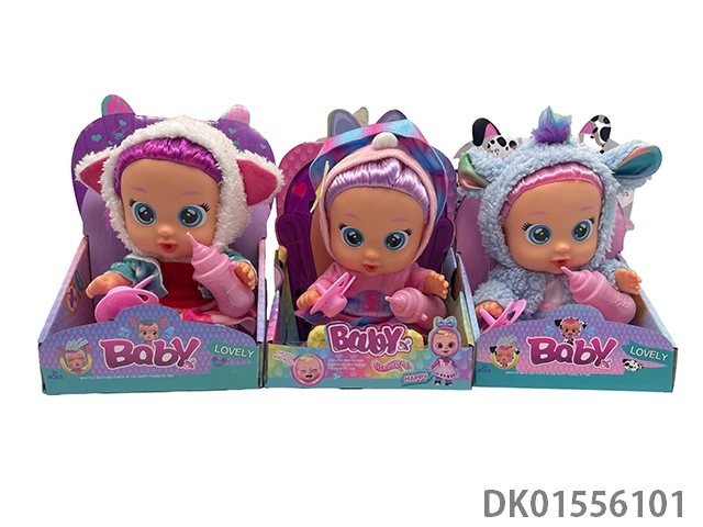 豪华版第14代10寸搪胶带四声音乐cry Babies-Tutti Fritti带流眼泪功能,带吸水奶瓶,带奶嘴,毛绒带加暖功能,衣服2件套2款混装