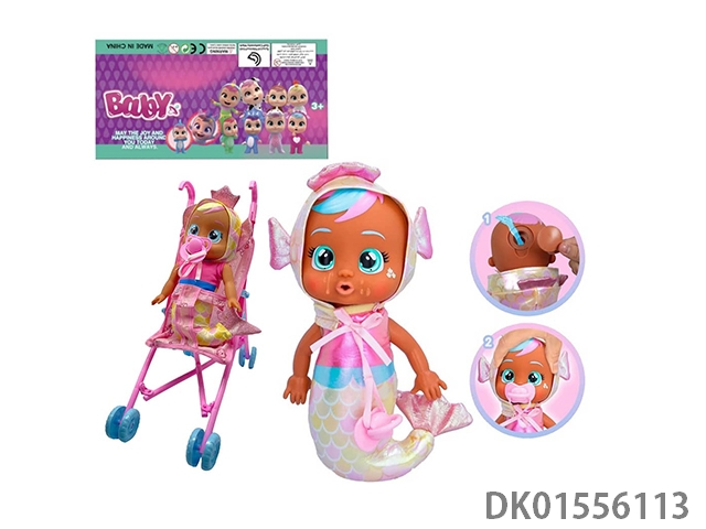 高档1比1 12寸搪胶头搪胶手棉绒身体带真实流眼泪,金属睡衣美人鱼娃娃带带四声音乐cry Babies-Tutti Fritti带流眼泪功能,带奶嘴,带大号推车