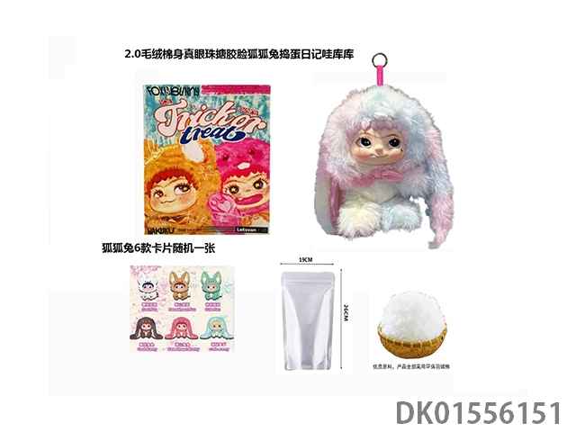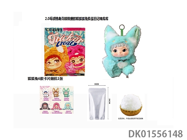 1比1 大号版棉身第二代 狐狐兔兔捣蛋系列毛绒棉身搪胶脸真眼珠WAKUKU带钥匙扣带6款卡片随机一张