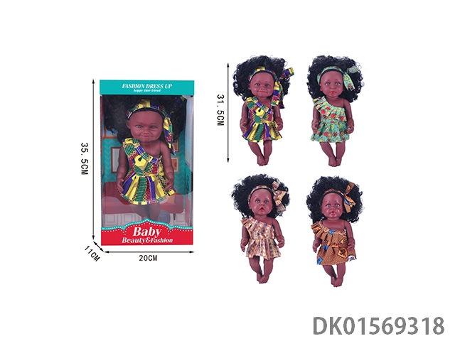 10寸全搪胶黑人娃娃4款混装带4声LC 12PCS