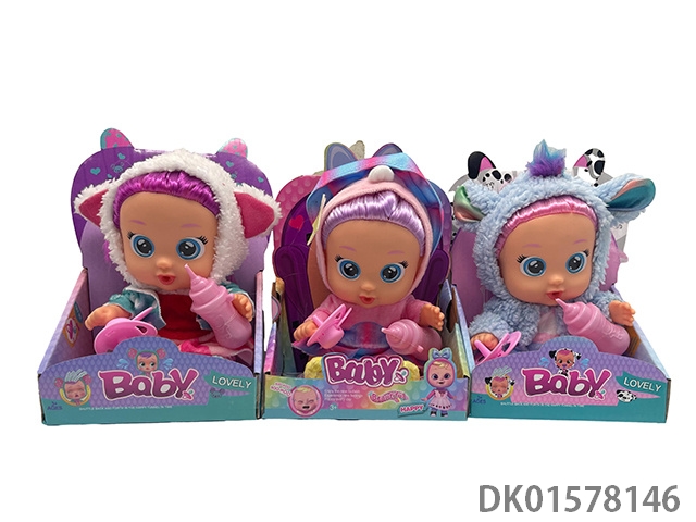 豪华版第14代10寸搪胶带四声音乐cry Babies-Tutti Fritti带流眼泪功能,带吸水奶瓶,带奶嘴 。毛绒带加暖功能。衣服2件套2款混装