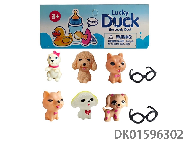 6只搪胶小狗配两幅眼镜[多款多色混装]