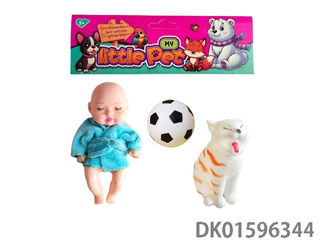 4.5寸实身睡眠娃娃配搪胶猫,球[多款多色混装]