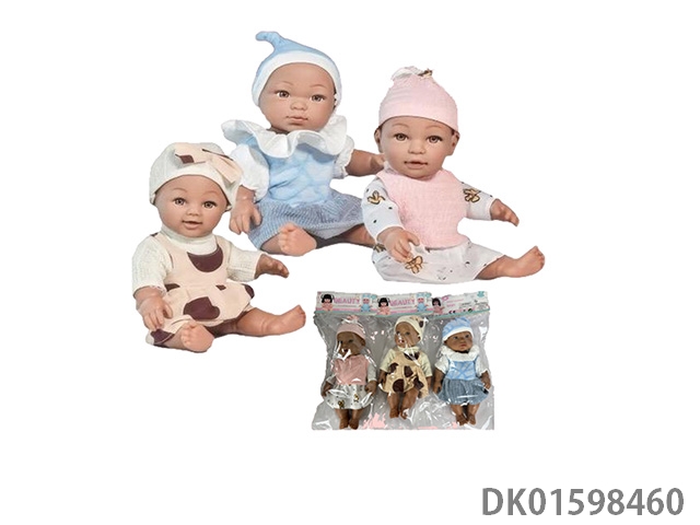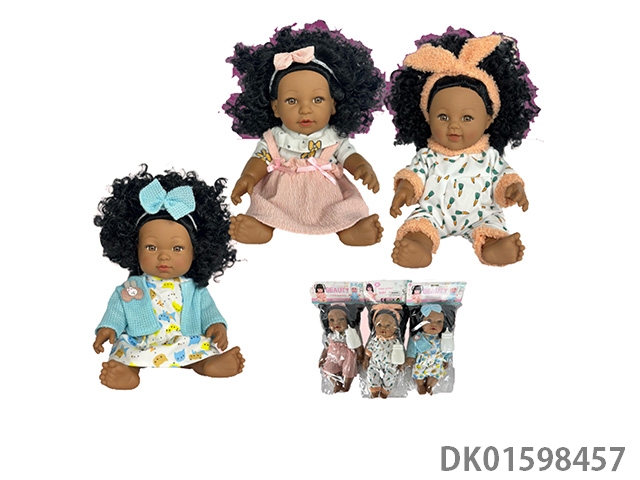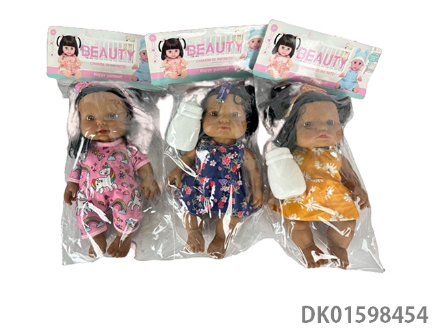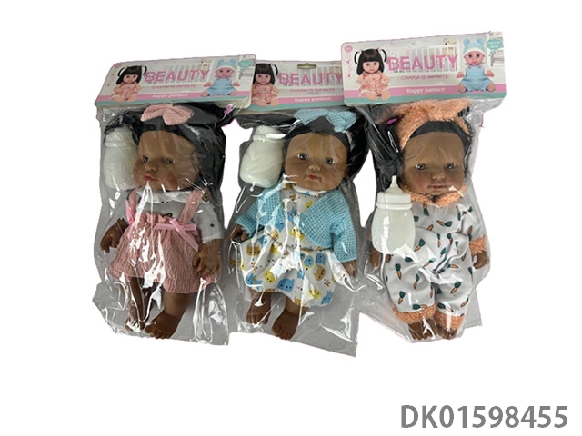 10寸全身搪胶黑皮肤娃娃带音乐奶瓶3款混