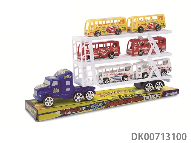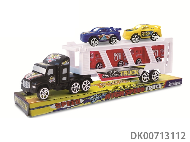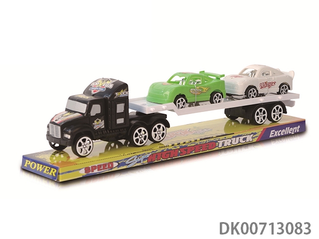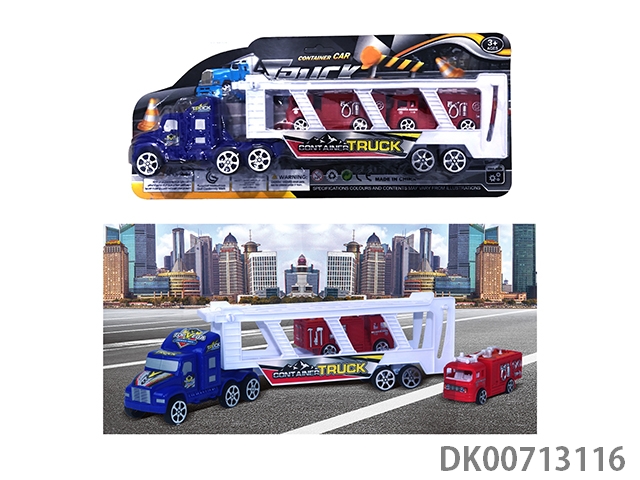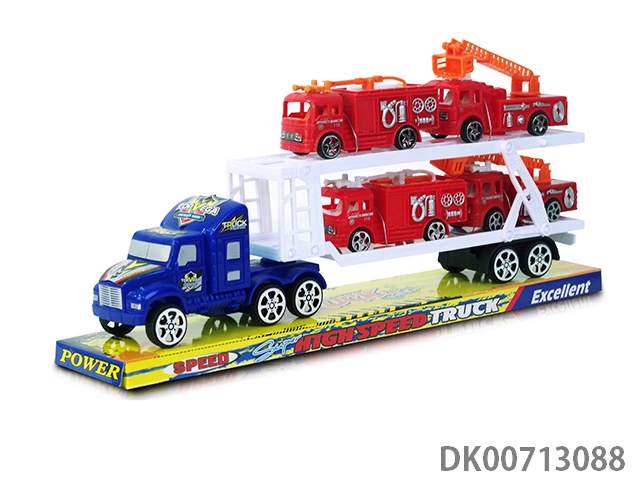 2层惯性拖车头载2只滑行消防车+2只滑行赛车
