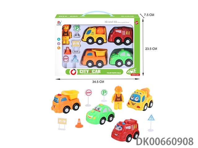 开窗盒惯性卡通车4只装2车+2人