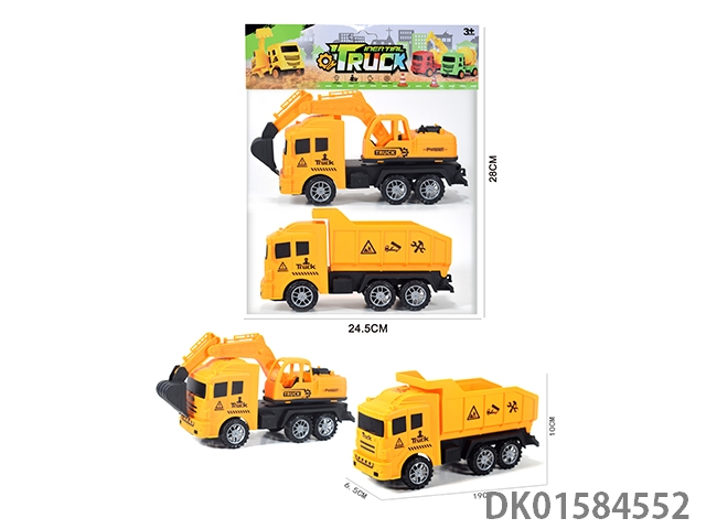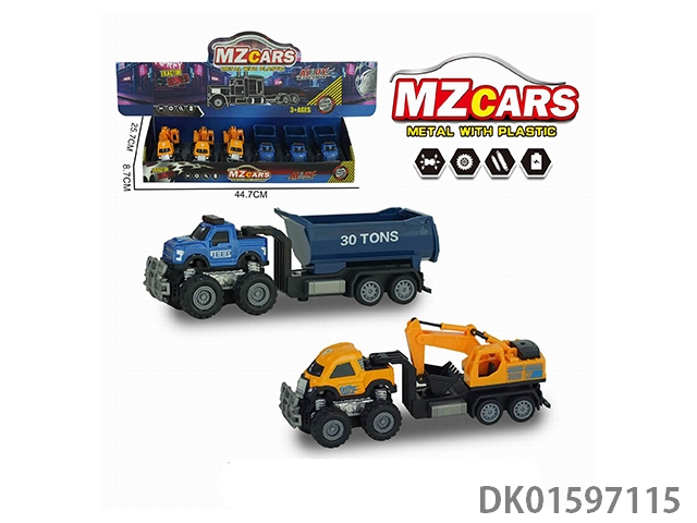 合金越野双惯性工程拖车 (挖掘车+自卸车)6只/盒