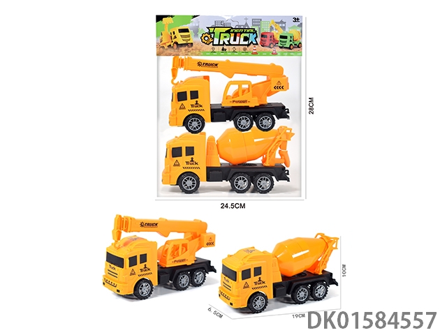 合金越野双惯性工程车 (滚筒车+吊车)6只/盒