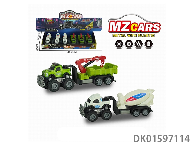 合金越野双惯性工程拖车 (滚筒车+吊车)6只/盒