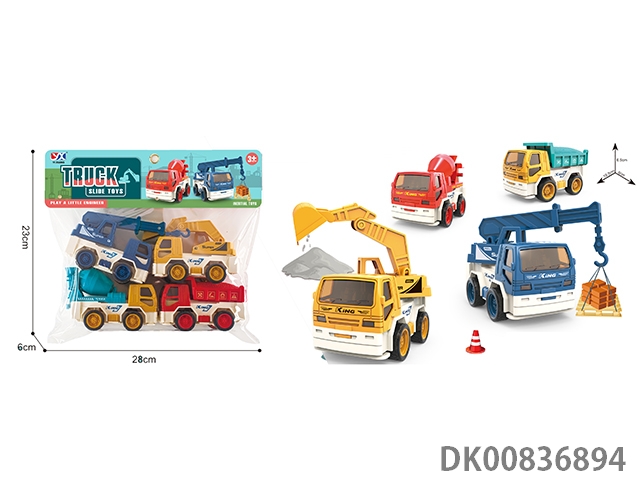 惯性仿真工程车系列吊车自卸车挖土车挖掘车泥罐车搅拌车拖头车开窗彩盒(4款混装)