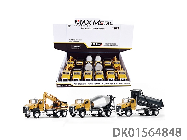 1:50双开门回力合金工程车(搅拌 勾机 自卸斗)3款混(12只装)