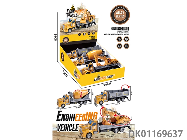 1:24美式黄色回力声光合金工程车带灯光音乐6pcs