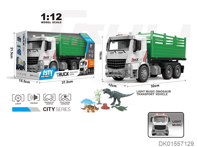 声光惯性1:12恐龙运输车 展示盒