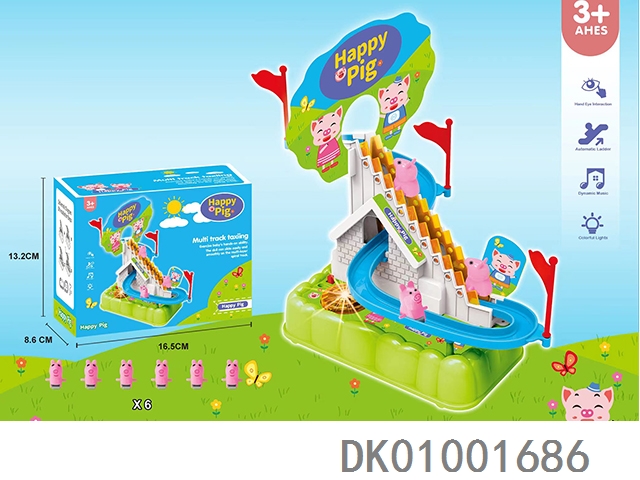 6只小猪爬楼梯电动滑行轨道灯光音乐(不包电)