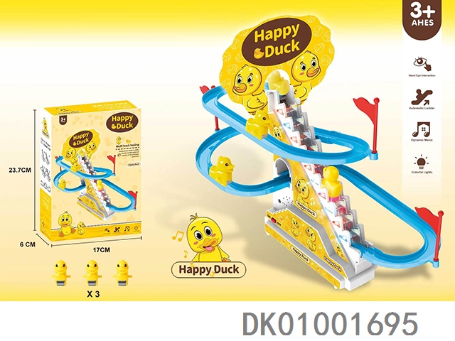 3只小鸭子爬楼梯电动滑行轨道灯光音乐(不包电)