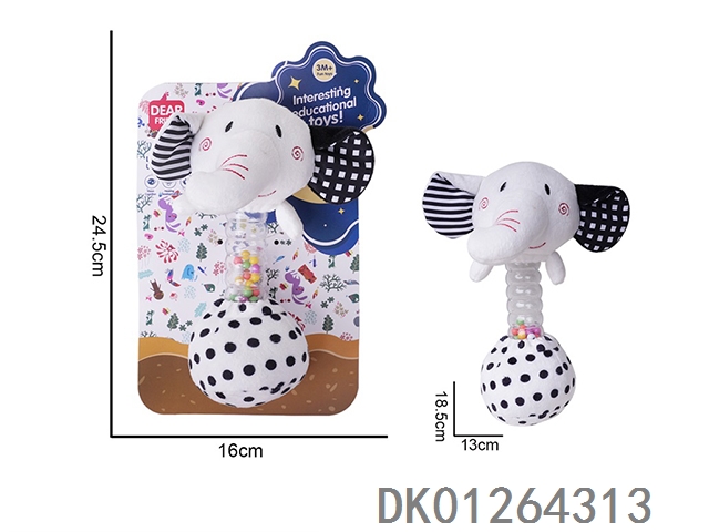 毛绒黑白大象手持摇铃BB棒婴儿安抚玩具