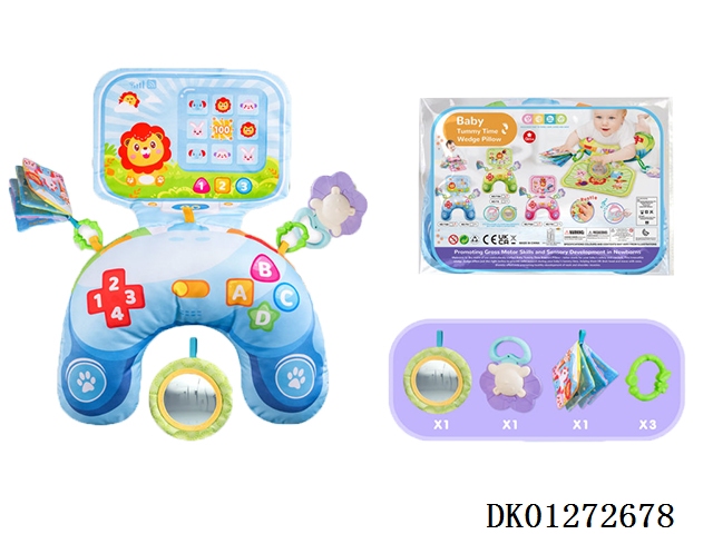 (蓝+音乐盒)趴着玩婴儿俯卧枕/婴儿枕宝宝腹部支撑枕幼儿健身枕婴儿用品玩具