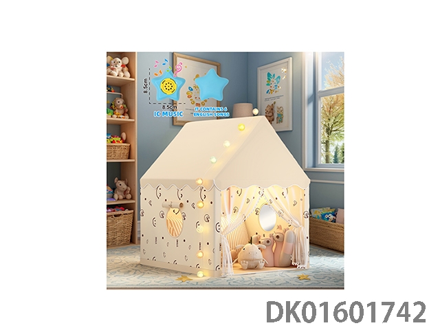 儿童帐篷过家家杏色屋顶笑脸简约风格单开门拉链款欧美格调