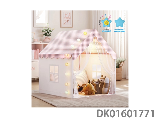 儿童帐篷童趣屋粉色方格款过家家游戏屋大房子条纹简约风格欧美格调